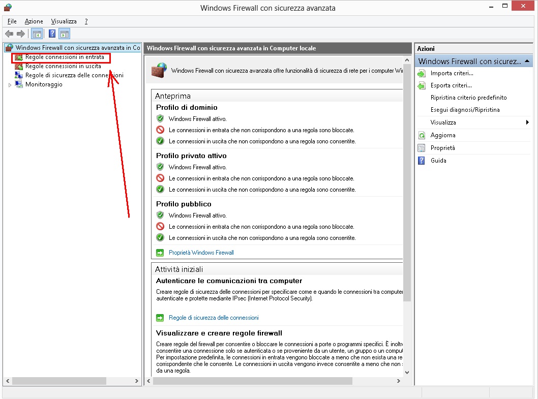 avanzate si selezionerà la voce Regole connessioni in entrata: