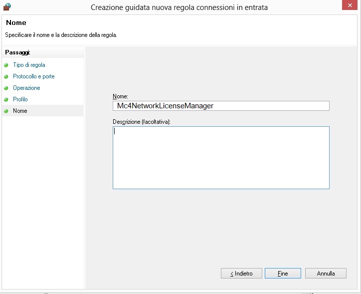 si assegnerà un nome alla porta e una descrizione (facoltativa):
