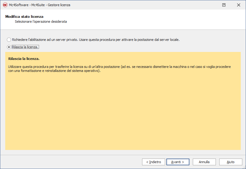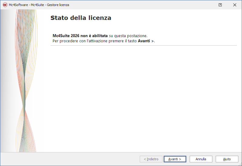 di licenza, nella prima maschera verrà visualizzato lo stato